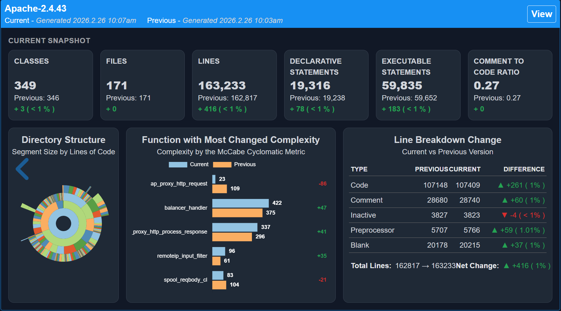 Verify code compliance, ensure code complexity stays below a specified threshold, or email the team a code comparison graph all from your existing pipeline. Learn More
